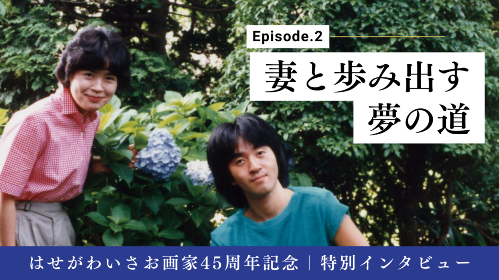 Episode.2「妻と歩み出す夢の道」は、 妻との出会いから結婚。生活のためにイラストレーターの仕事をしながら画家としての道を妻と二人で歩み出したストーリーです。 -